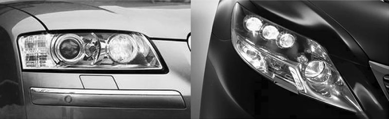 伴隨LED 模塊技術(shù)的發(fā)展, 高亮度輸出LED模塊也成功面世, 如Lumileds 研制的白色LuxeonLED 模塊、OSRAM 的“OSTAR” 白色LED 模塊,使得LED 在汽車(chē)前照燈上的應用也成為可能,并引領(lǐng)了新一代前照燈技術(shù)的潮流。但由于高成本的限值,目前的LED 前照燈主要應用在高級豪華車(chē)輛上。2004 年, Audi A8 6. 0L 豪華車(chē)第一次使用Lumileds 的6 個(gè)白色Luxeon LED 作為日間行車(chē)燈。